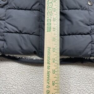 Green Tea Women's Puffer Vest Gray Faux Fur Hood Sherpa Lined Zip Snap Closure