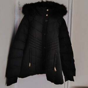 Michael Kors Plus Size XXL Black Faux-Fur-Trim Hooded Puffer Warm Winter Coat
