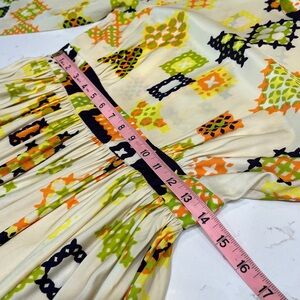 Vintage Handmade 1960s 1970s Geometric Print Long Sleeve Empire Dress