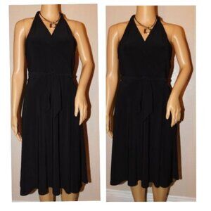EUC Vintage Halter, Twist-Neck Black Midi Dress LBD