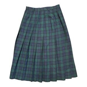 Vtg Lands' End Green Blue Plaid Wool Pleated Midi Wrap W. Pin Skirt Sz 10 USA