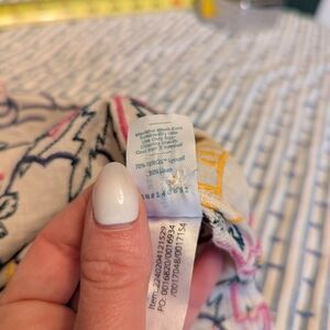 Super cute tropical patterned and colorful embroidered shirt. Every part of the pattern is embroidered. I would call it cropped, but check measurement pic for specific length.