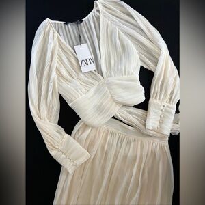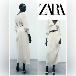 Chic cream skirt set by Zara. Features a pleated design. Ideal for stylish outings.