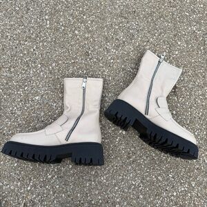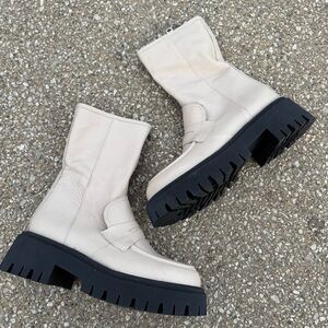 Free People Madison Loafer Boots Sz 39 US 9 Leather Beige Cream Chunky Lug Sole
