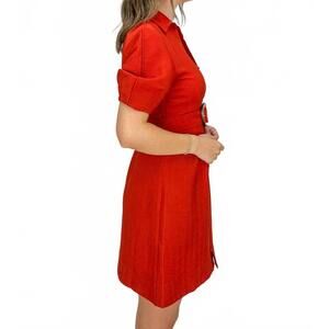Embrace the warm tones of autumn with the Tabitha Mini Dress by Current Air, a chic addition to your wardrobe in a rich amber hue. Crafted with a minimalist design, this solid-colored shirt dress features short sleeves and a classic collar, making it ideal for vacation occasions. It is styled with a button closure for easy wear. Transition effortlessly into the season while maintaining your elegant aesthetic.
