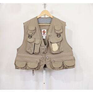 Vintage 80s Vest Tan Fly Fishing Hunting Pockets Men's Size XL Columbia