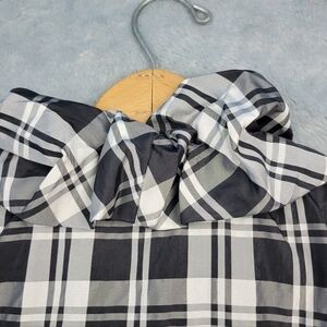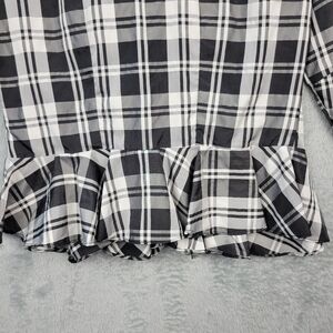 Boston Proper Womens Blouse Size 10 Peplum Hidden Button Up Black White Ruffle