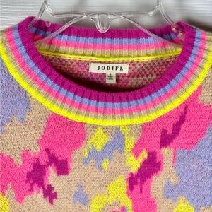 Jodifl Balloon Sleeve Felicia Oversized Sweater Bright Pink Yellow Blue Small
