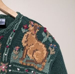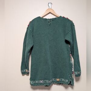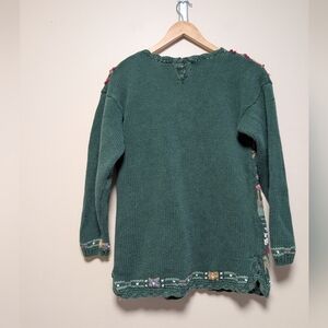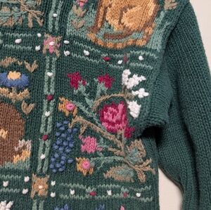 vintage knit, hand knit sweater, spring knit, cottagecore, folk art sweater, artisan made, nature motif, slow fashion