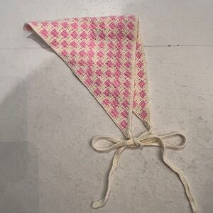 Charming pink and white crochet triangle head scarf Perfect for adding a touch of color to any outfit.
