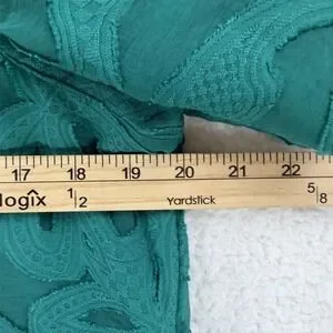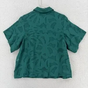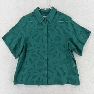 Chicos Shirt Womens 6 Green Textured Sheer Short Sleeve Button Front Blouse