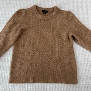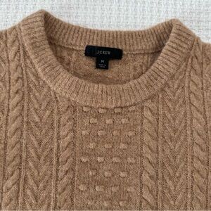J. Crew Camel Tan Stretch Wool Cable Knit Crewneck Sweater Womens Medium