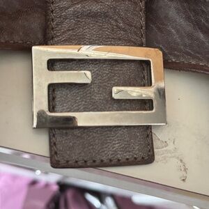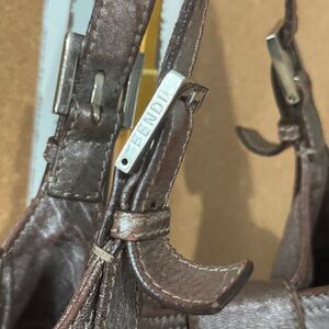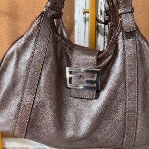 Chic Fendi shoulder bag with metallic finish. Stylish buckle detail. Perfect for everyday elegance.