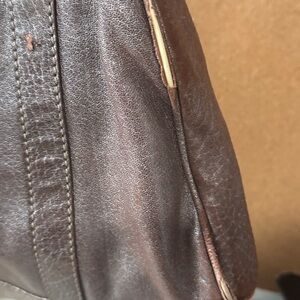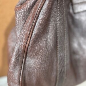 This purse has wear, exposed piping and needs some conditioning on exterior. The color is hard to describe, it’s kind of between a gray and brown with a metallic tone. The straps are adjustable so you can make them longer if you need more room. Inside, it is in overall good condition, mostly clean with a couple of marks. No bad smells. From non smoking home. Has the serial number and hologram sticker. Minor wear and scratches on hardware. The worse part of the the condition is really the exposed piping on the exterior. I was going to cut it off and repaint the bag but just bought a new bag and do not have the time to rework this one. At this price, this is a fantastic bag! I love reasonable offers!