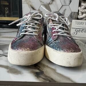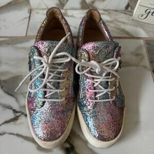 Giuseppe Zanotti Women’s Gail Rainbow Glitter Sneakers Size 40 Zip Up & Laces