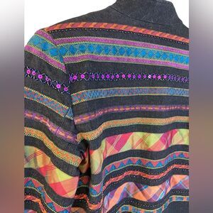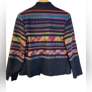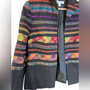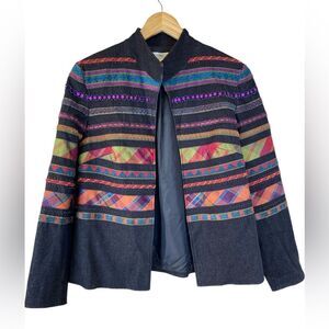 Coldwater Creek Embellished Blazer. Size 10. Excellent condition. Beautifully embellished with Sequin, beads, embroidered trim ribbons, colorful fabric. Open front blazer is fully lined, small collar and long sleeves.