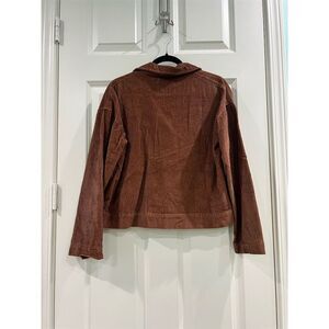 Keywords: Urban Outfitters, corduroy jacket, women's jacket, casual wear, button-up, classic collar, chest pocket, brown jacket, long sleeve, short length, regular fit, cotton jacket, solid pattern, pre-owned.