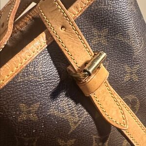 Vintage Louis Vuitton Tote Bag Bucket GM. Product has been used but is in good condition. The leather has minor scratches, scuffs, discolorations, stains and/or dirt as shown. Specifically, but not limited to there is piling, wear and stains around the inside top of bag. The zipper works. Approximately dimensions are 14 inches high, 10.5 inches wide and 8 inches deep.
