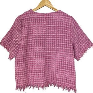 Vici Pink Tweed Fringe Short Sleeve Top. Size XL