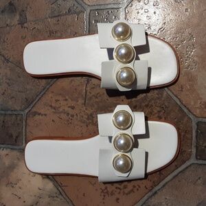Step out in style with these elegant white sandals, featuring stunning pearl embellishments. Perfect for any occasion.