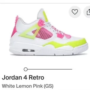 Vibrant Jordan 4 Retro in white, lime, and pink. Eye-catching design for any outfit. Boy's 5.5Y Girls 7