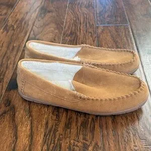 Lands End size 13 Soft suede moccasins with plush lining. Perfect for cozy comfort. Very nice and never worn!