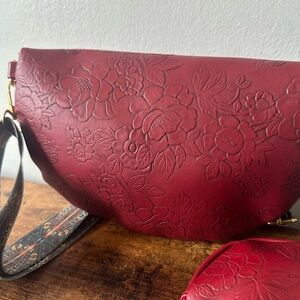 Red Floral Embossed Women's Waist or Crossbody Bag Faux Leather & Coin Purse NWT