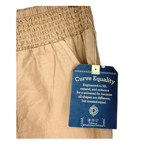 NWT Democracy Plus Sz 1X Sky Rise Tan Khaki Linen Blend Smocked Waist Shorts NEW