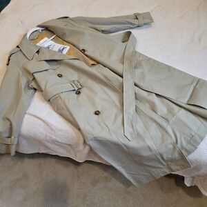 Classic Burberry trench coat in a timeless khaki color. This coat was gifted to me and has never been worn or used. Please note that I am not certain of its authenticity, as it was received as a gift and I do not have original purchase documentation. I am listing it transparently and pricing it accordingly.