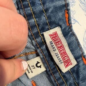 True Religion Relaxed Blue Jeans with Orange Accents