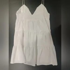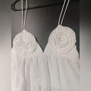 Beautiful Zara dress, featuring spaguetti straps, two rossettes upfront, three bands in the skirt, empire waist style, completely lined and two convenient side pockets. in the back has an elastic panel of about 4 inches.