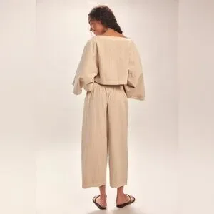Perfect for transition-season dressing, this pant set from free-est features a cropped, high-rise harem pair and billowy long-sleeve top for endless styling, together or separate.