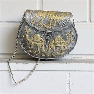 The product is a handcrafted mid-century modern metal purse designed specifically for women. Its lightweight design makes it easy to carry around, while the metallic finish adds a touch of glamour. This purse is perfect for women who appreciate unique and stylish accessories that make a statement.