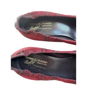 Donald Pliner Red Plaid Suede Kitten Heels Size 10 Made In Italy
