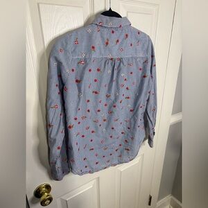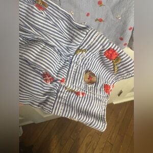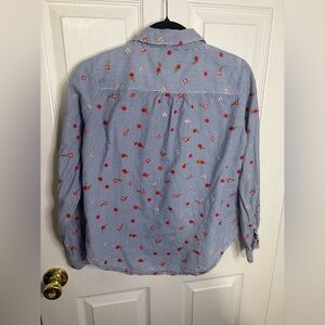 Maeve (Anthropologie) Embroidered Buttondown – Size 4 | Blue & White Stripe with Red Floral