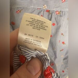 • Color: Blue & white stripe with red floral embroidery