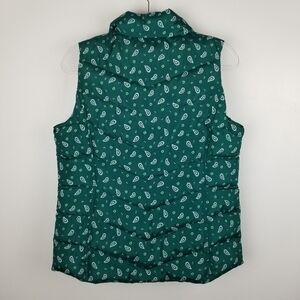 Lands' End Evergreen Bandana Paisley Puffer Down Vest NWT size Small