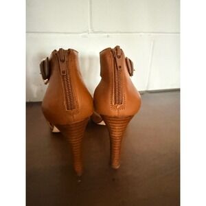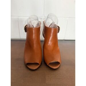 Louise et Cie Brown Leather Peep Toe Ankle Booties Heel Buckle Zip Size 6.5
