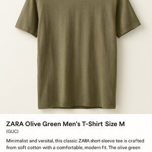 Minimalist and versatile, this classic ZARA short-sleeve tee is crafted from soft cotton with a comfortable, modern fit. The olive green color makes it perfect for layering or wearing solo for a clean, effortless look.