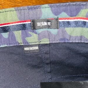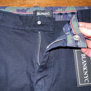 Blank NYC dark navy/ black soak city men’s shorts slim fit, front side and back pockets, camo waistband and cuffs