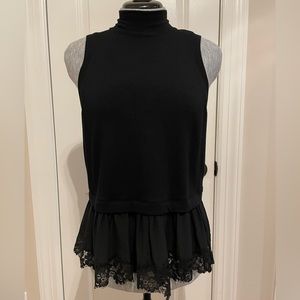 Rebecca Taylor mixed media peplum tank. Mock neck/high neckline. Lace detail at hem. Size XS. New with tags still attached!