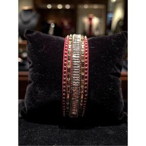 Bright snap bracelets with rhinestone accents. Perfect for a bold look.