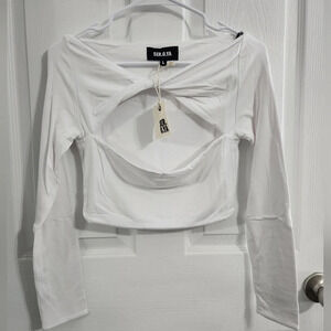 NWT Ser.o.ya white Ellis Top stretch minimalist Coquette girl cut out size large