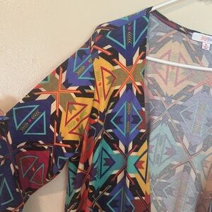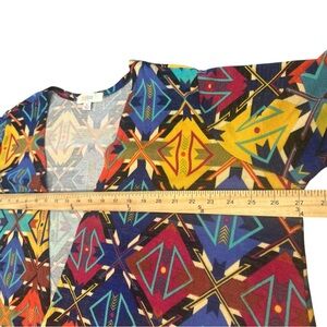 Lularoe Maxi Duster Size XL Tribal Print Blue Multicolor Open Front Long Sleeve