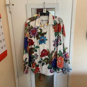 Bold floral design with vibrant colors. Long sleeves and classic collar. Ideal for a standout look.