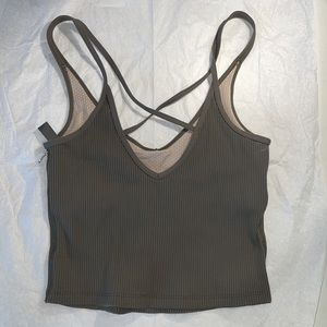 Stylish ribbed tank top. Features criss-cross straps. Perfect for casual wear.