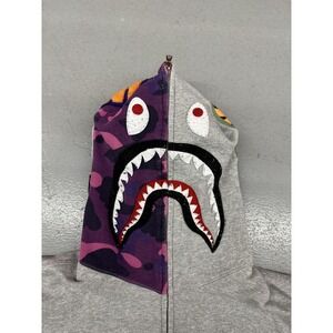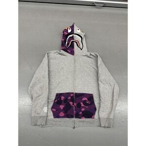 A Bathing Ape BAPE Shark Full Zip Hoodie Mens Large Gray Purple Camo WGM Japan