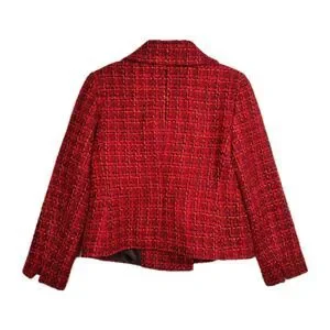 The Talbots Petites Tweed Blazer is a stylish and sophisticated addition to any petite woman's wardrobe. Made from a wool blend tweed, this double-breasted blazer features a solid pattern in a vibrant red/orange color. With long sleeves and a short jacket length, this blazer is perfect for adding a pop of color to any outfit. The 100% polyester lining ensures comfort and quality, making it a versatile piece for both casual and formal occasions. Perfect for the fashion-forward woman looking to make a statement in her wardrobe.