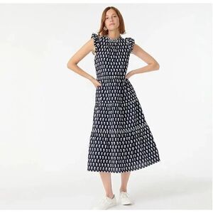 J Crew Sleeveless Women's Blue Tiered Cotton Voile Maxi Dress In Floating Embroidered Sunflowers. SZ MT #1493