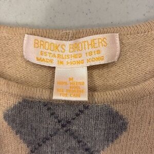 Size Medium GORGEOUS Tan Argyle Merino Wool Sweater in GREAT CONDITION (small snag on backside of sleeve, see picture) not seen when wearing.